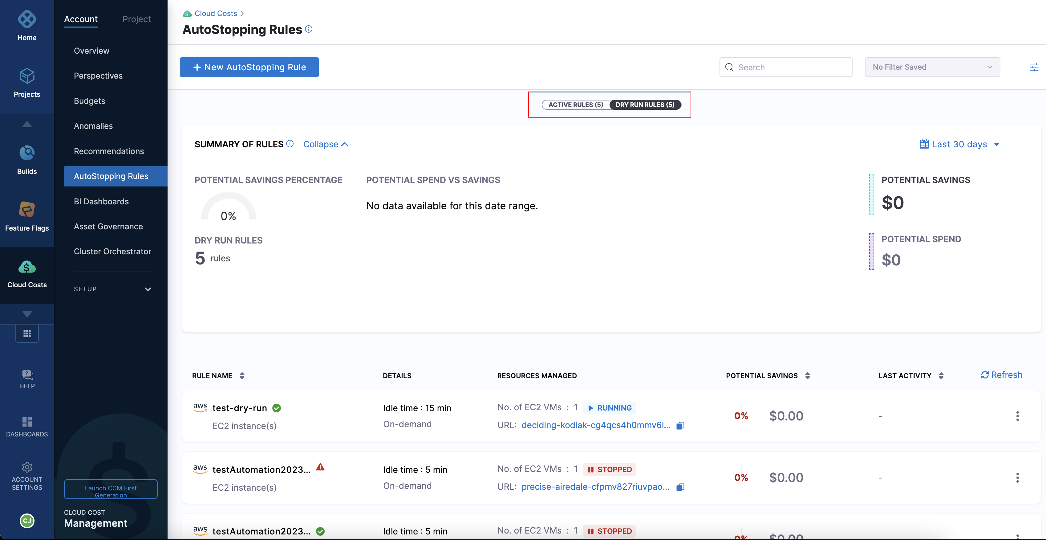 If the data is satisfactory, you can turn off the Dry Run mode to apply the AutoStopping rule to your cloud resources and start saving costs.