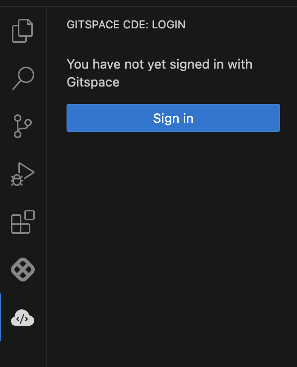 1. Open VS Code, click on the Gitspaces icon in the activity bar, and select "Sign in."