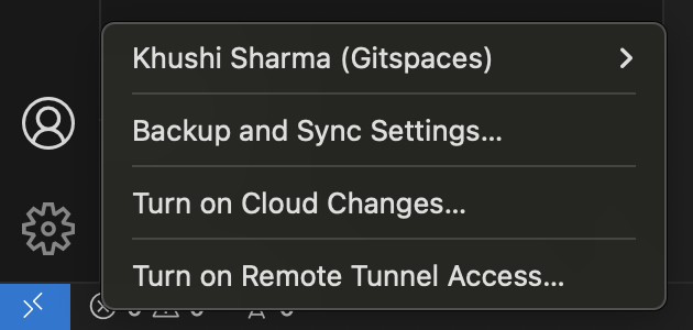 3. To verify your account, check the Accounts icon in the activity bar where your Gitspace account should now be listed.