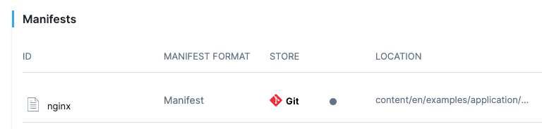 5. In Manifest Details, enter the following settings, test the connection, and click Submit. We are going to provide connection and path information for a manifest located at https://raw.githubusercontent.com/kubernetes/website/main/content/en/examples/application/nginx-app.yaml.