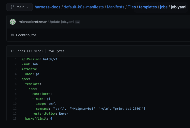 For example, the path in Manifests is default-k8s-manifests/Manifests/Files/templates and the Job manifest is in the subfolder of templates named jobs/job.yaml.