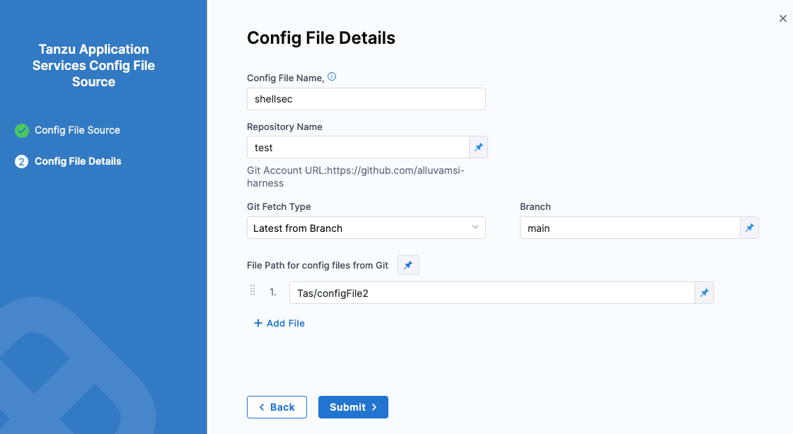 Service configuration files enable you to specify information in the Harness service that can be referenced in other parts of the Harness application. In this topic, we'll cover using these configuration files for Tanzu Application Service (TAS, formerly PCF).