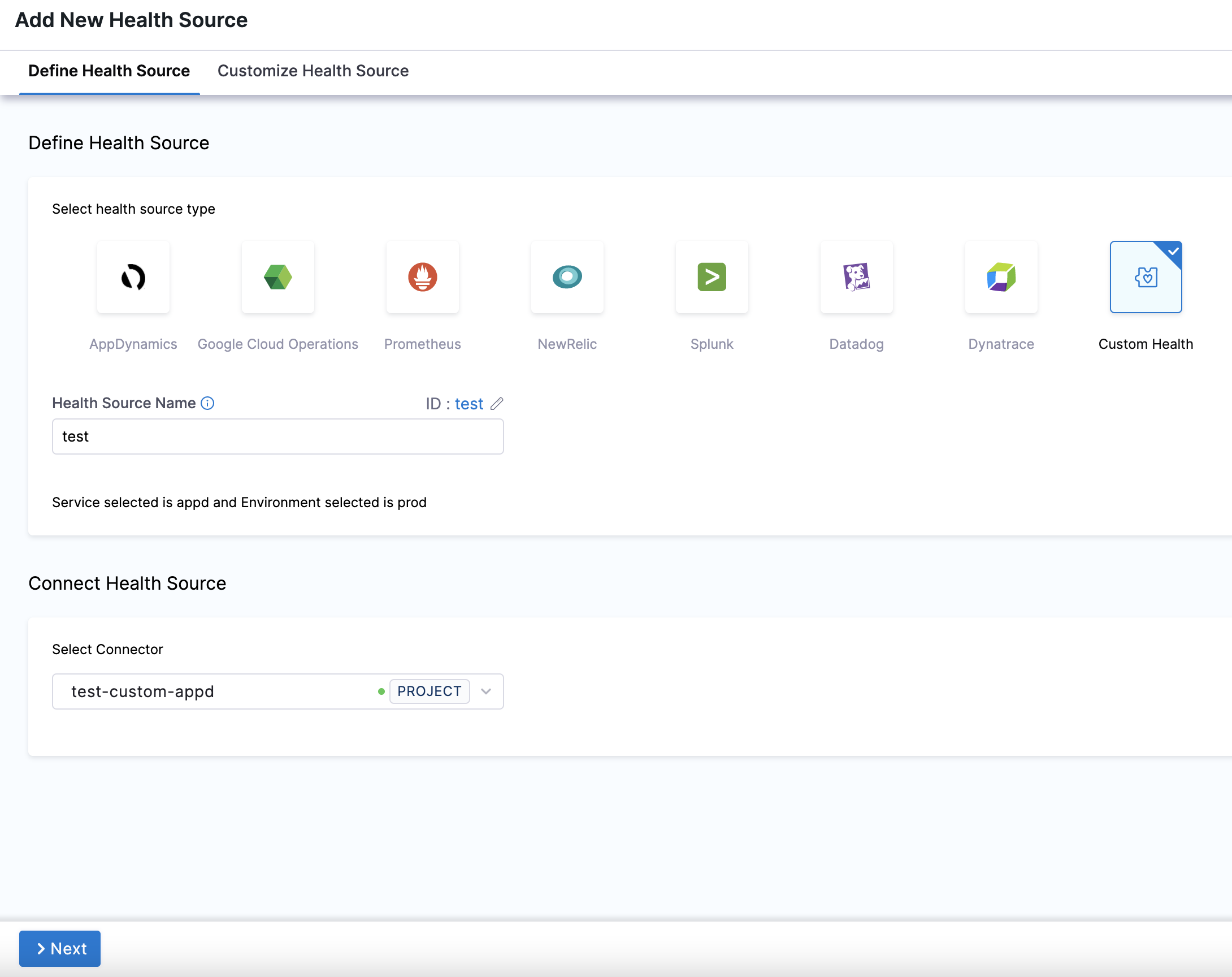 1. If you select Custom Health Metrics, the Customize Health Source settings appear as:
