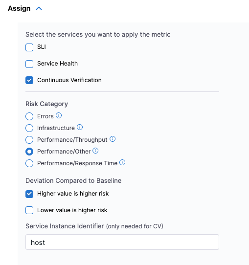 - In Select the services you want to apply the metric, select Continuous Verification (Applied to the pipelines in the Continuous Deployment).