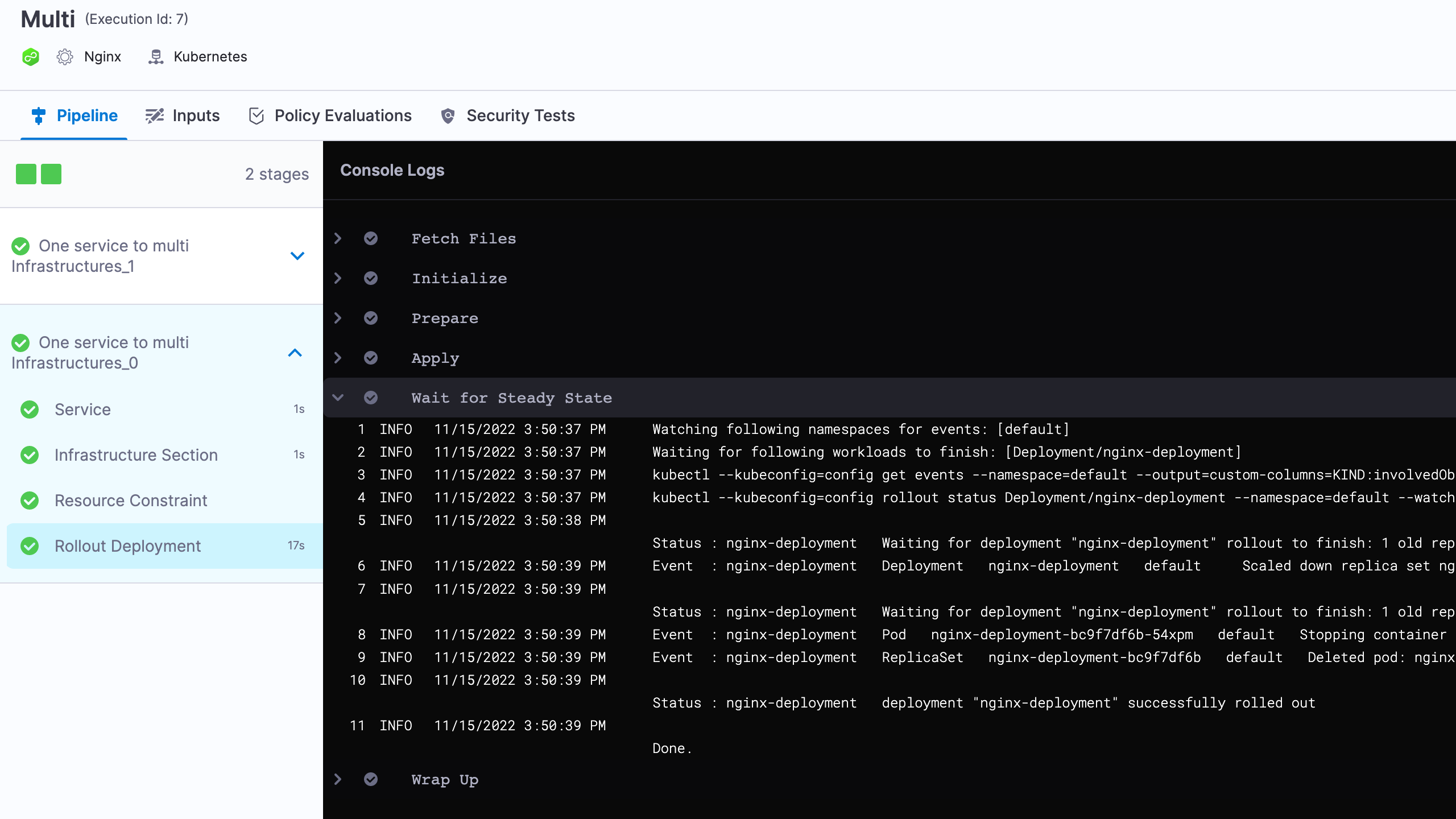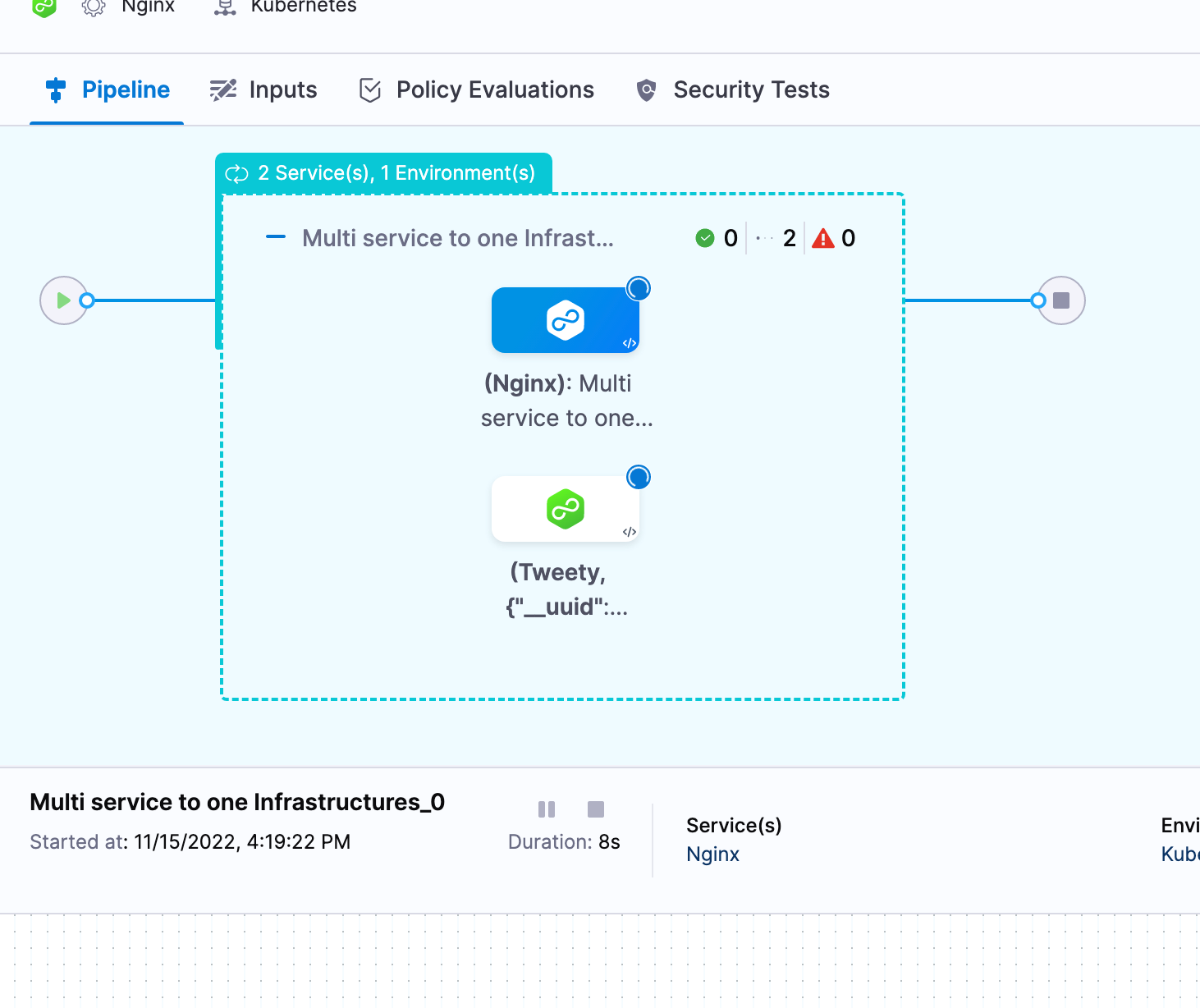 For example, let's say you host one infrastructure per customer and want to deploy your service to all customer infrastructures in the same pipeline. Instead of creating separate stages for each service and infrastructure combination, you can just deploy a single service to all infrastructures in the same stage.
