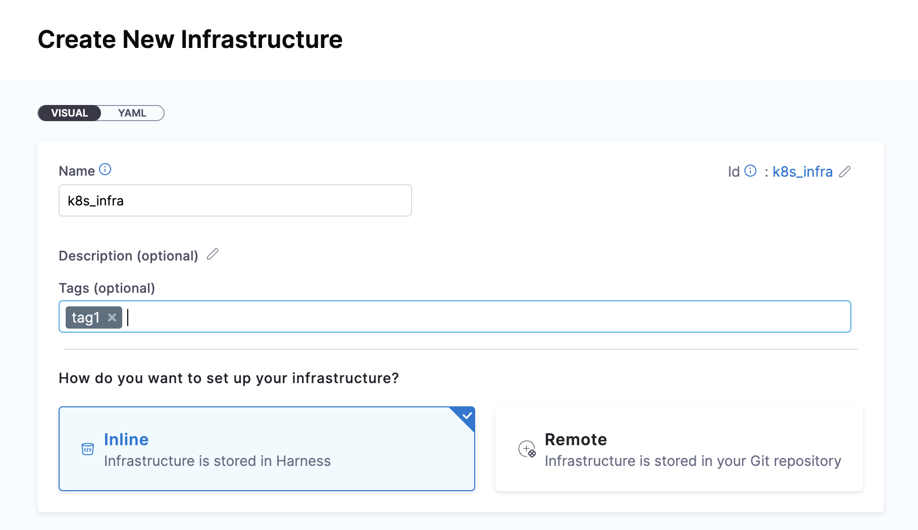 You can also add tags to existing infrastructure by navigating through Project Settings -> Environments -> Infrastructure Definitions tab and choose the infrastructure where the tag needs to be added.