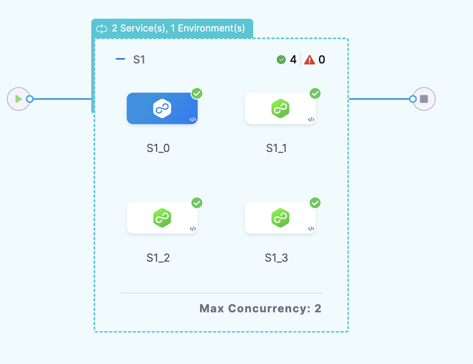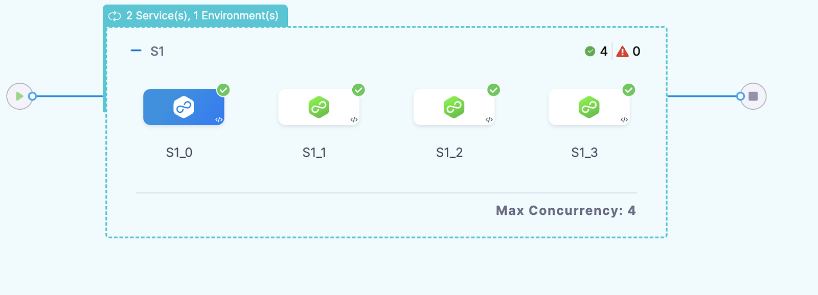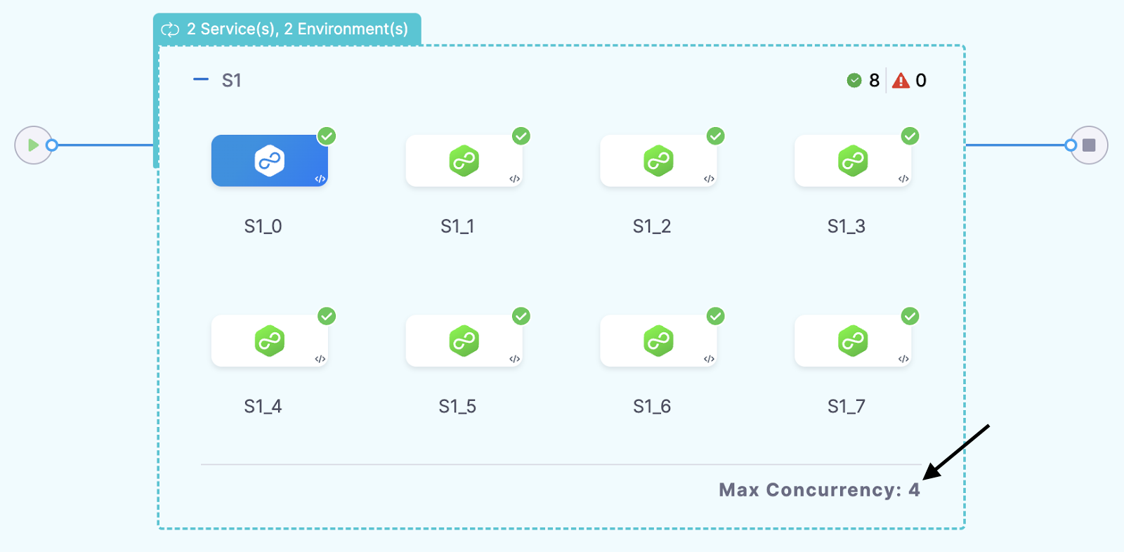 • If you select Deploy services in parallel and Deploy to Environments or Infrastructures in parallel, Max concurrency is equal to the number of services multiplied by the number of environments.