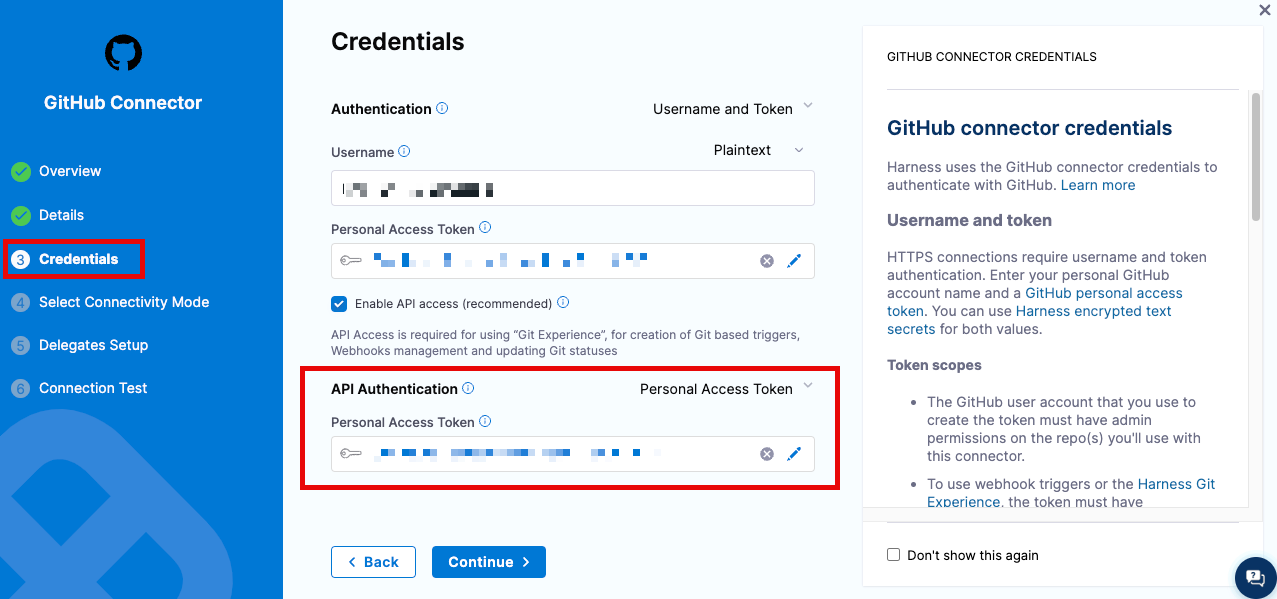 - Make sure you enable API access in your code repo connector settings.