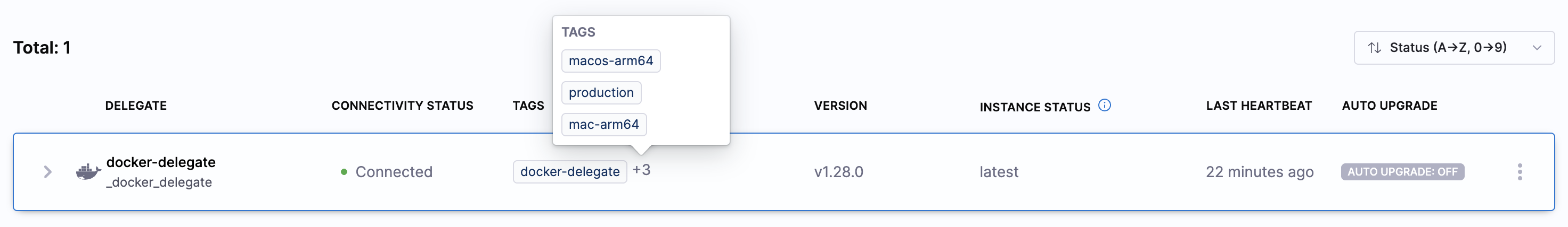 Navigate to Project Settings > Delegates in Harness UI. You should see your delegate with a Connected status.