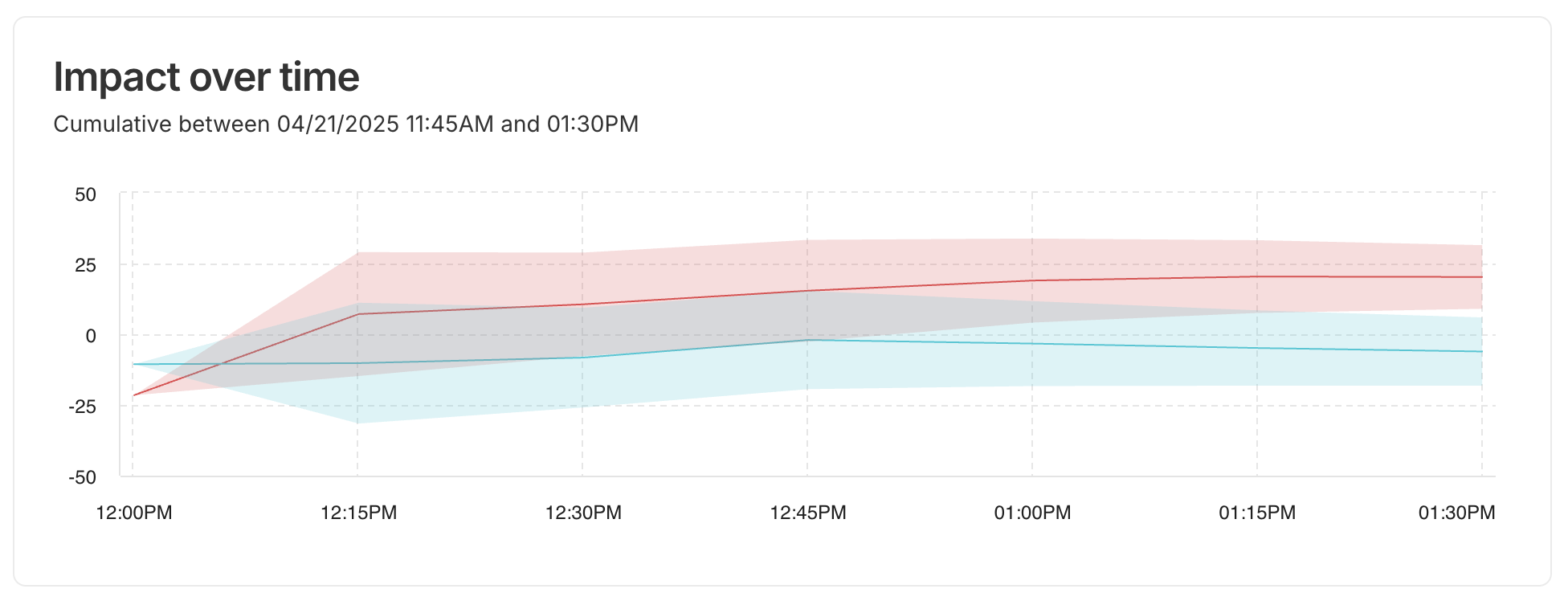 Seeing the impact over time visualization gives a clear sense of how fast the gains (or losses) are accumulating, and whether the treatment effect is growing, shrinking, or plateauing.