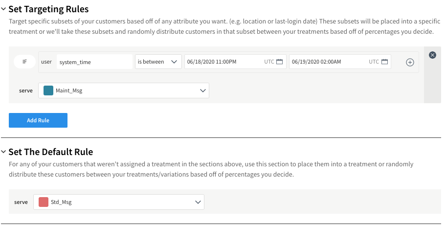 For example, if you have a rule that individually targets users by ID or segment, but you need to give certain users a different treatment based on an attribute (such as slow network speed), create a higher-priority rule for that attribute.