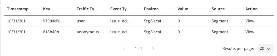 Note that the traffic type and key match up with what was sent in Segment. If you want to see that every detail of the event matches what was sent to Segment, then you can click on View for a specific event.