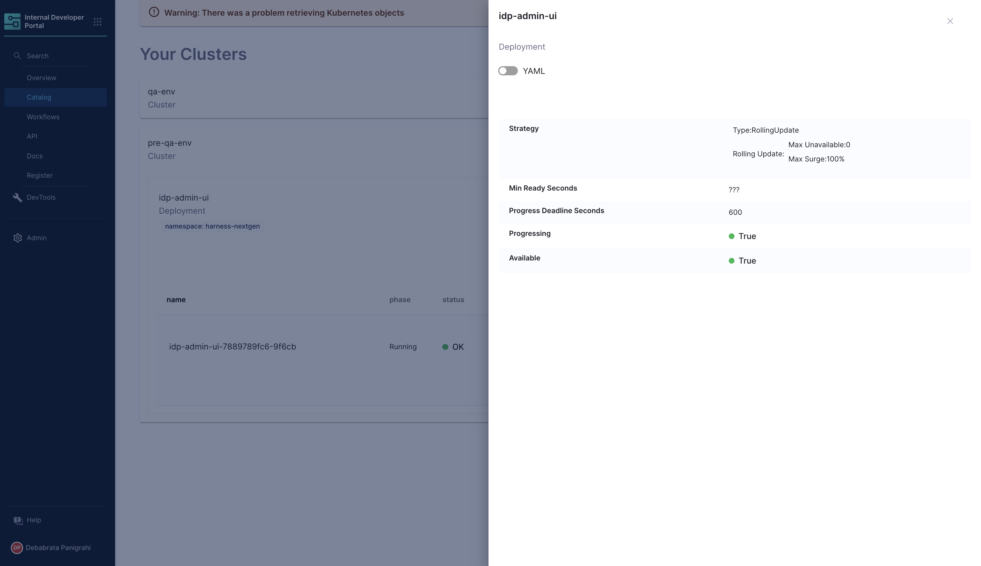 In order for IDP to detect that an entity has Kubernetes components, the following annotation should be added to the entity's catalog-info.yaml:
