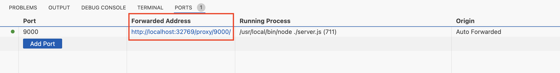 1. To access the forwarded port URL, go to the "Ports" section in your IDE terminal. From there, you can easily open the forwarded port URL.