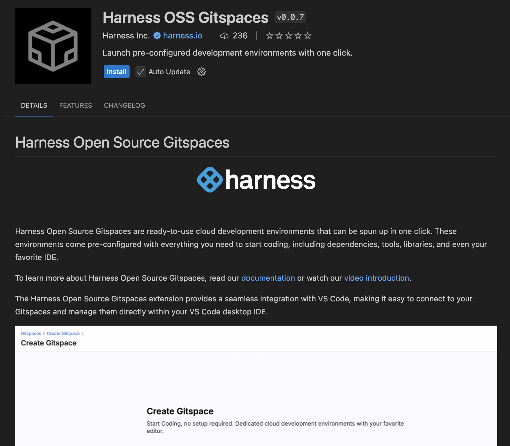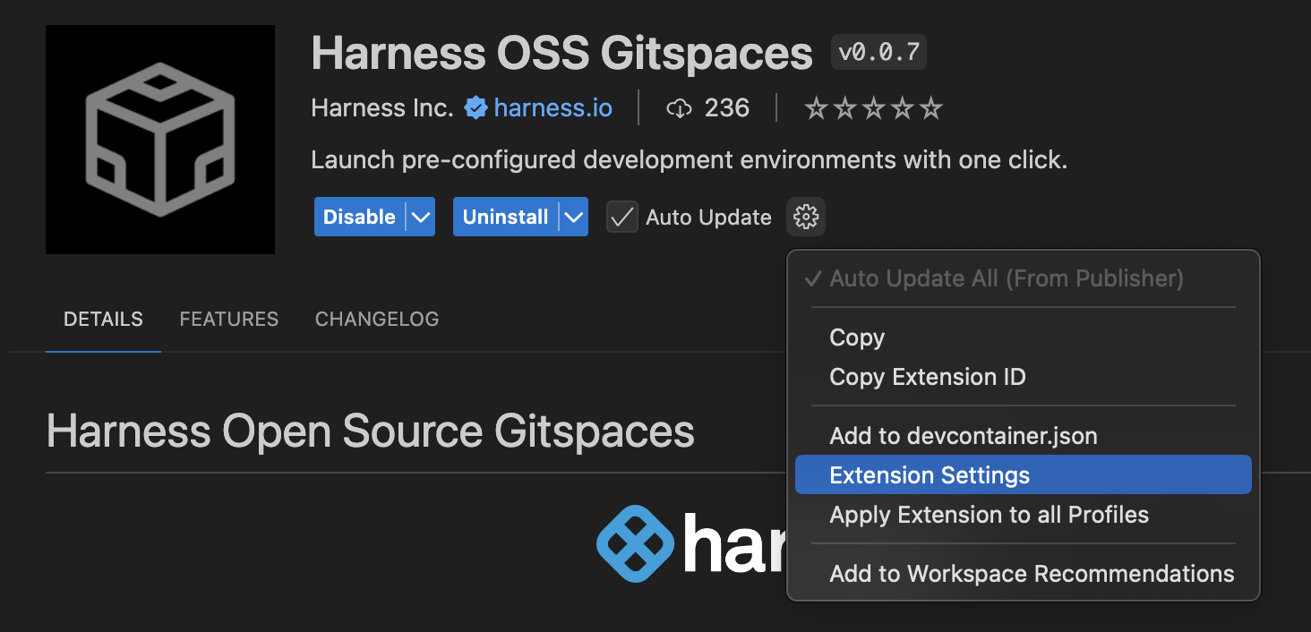2. Search for “Harness Open Source Gitspaces Extension”.