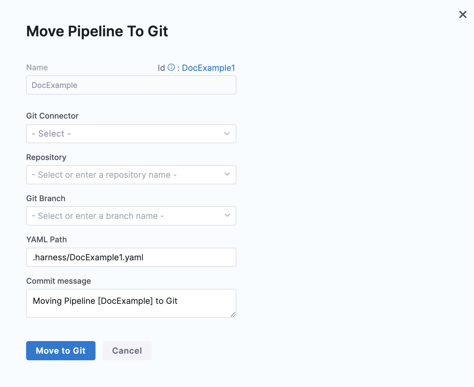 4. The Move Pipeline to Git dialog opens.