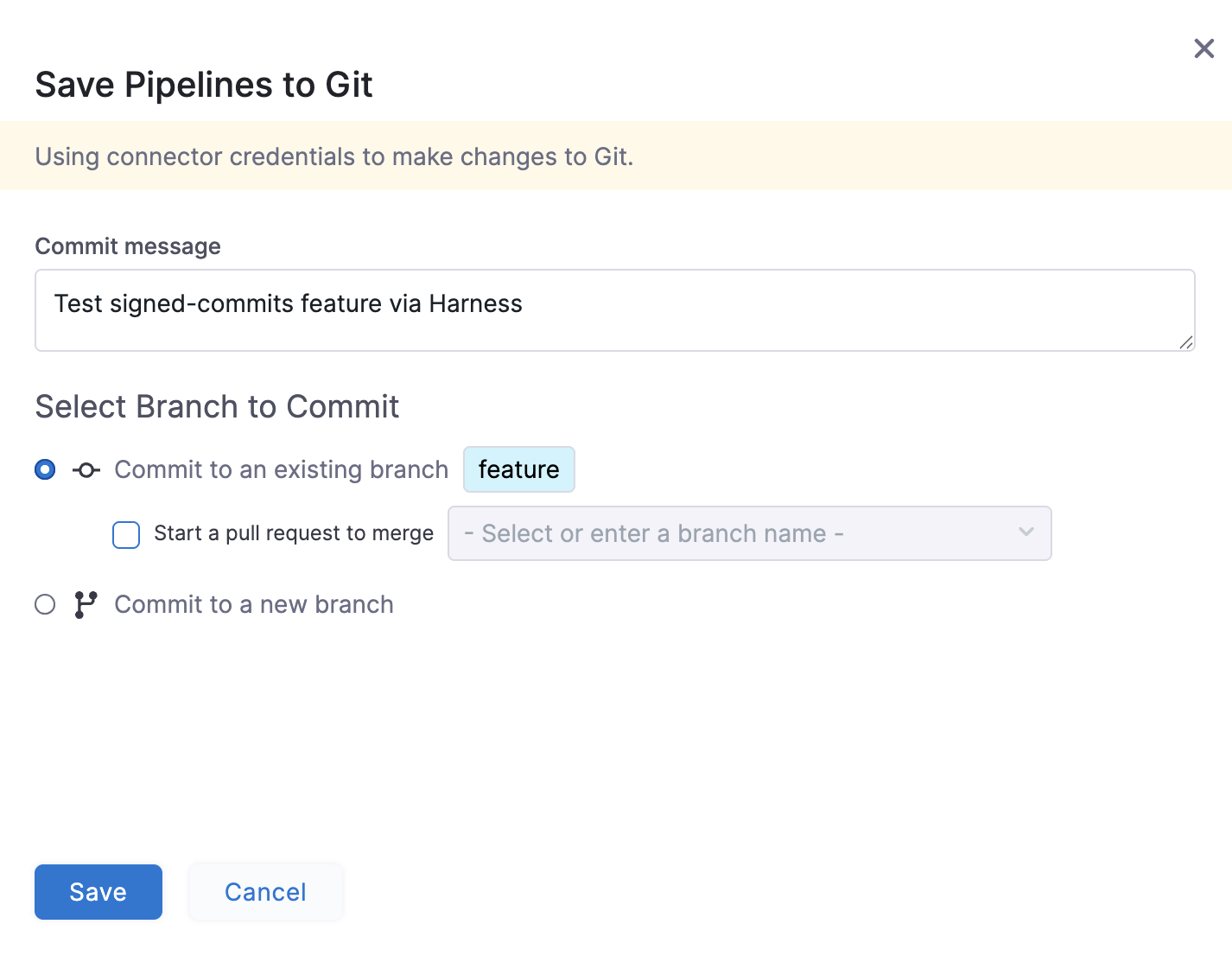 In order to utilize signed commits, you need to have a GitHub App based connector configured in your Harness account. If you don't have a GitHub App based GitHub connector configured, you can follow the steps to understand how to Use a GitHub App in a GitHub connector.