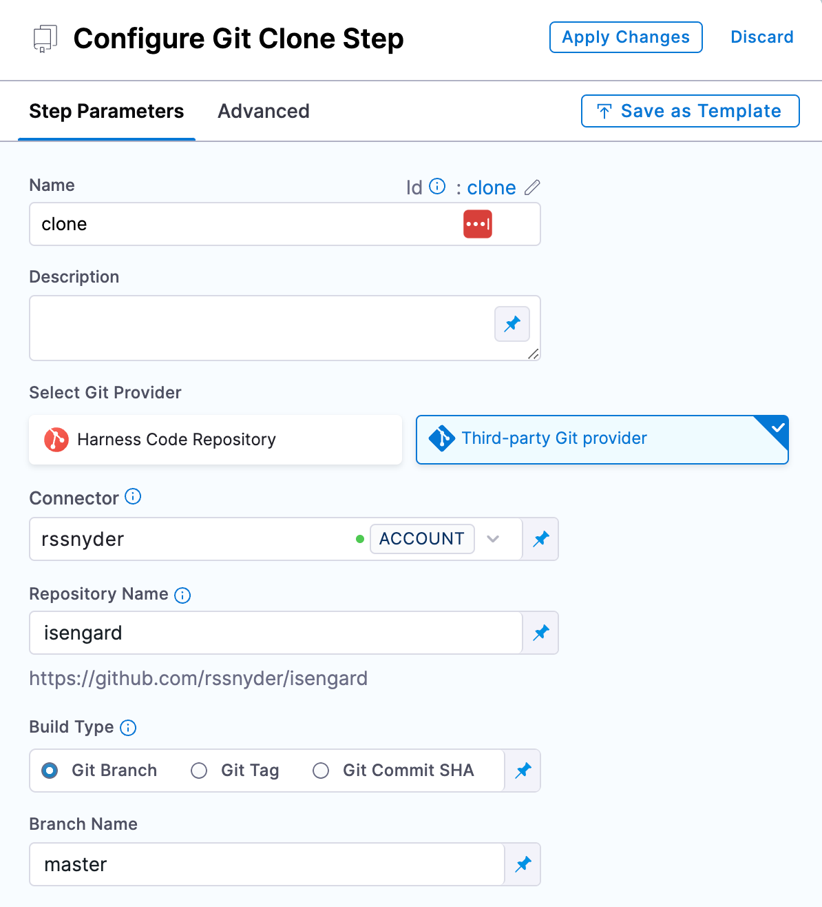 Please note that the JEXL included assume the step group has an identifier of ansible and the clone step of clone, you may need to adjust the JEXL based on how you nameed those resources. It also assumes your SSH secret file id is pem_file.