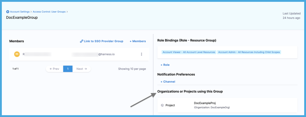 1. In Harness, go to the scope where the user group exists.