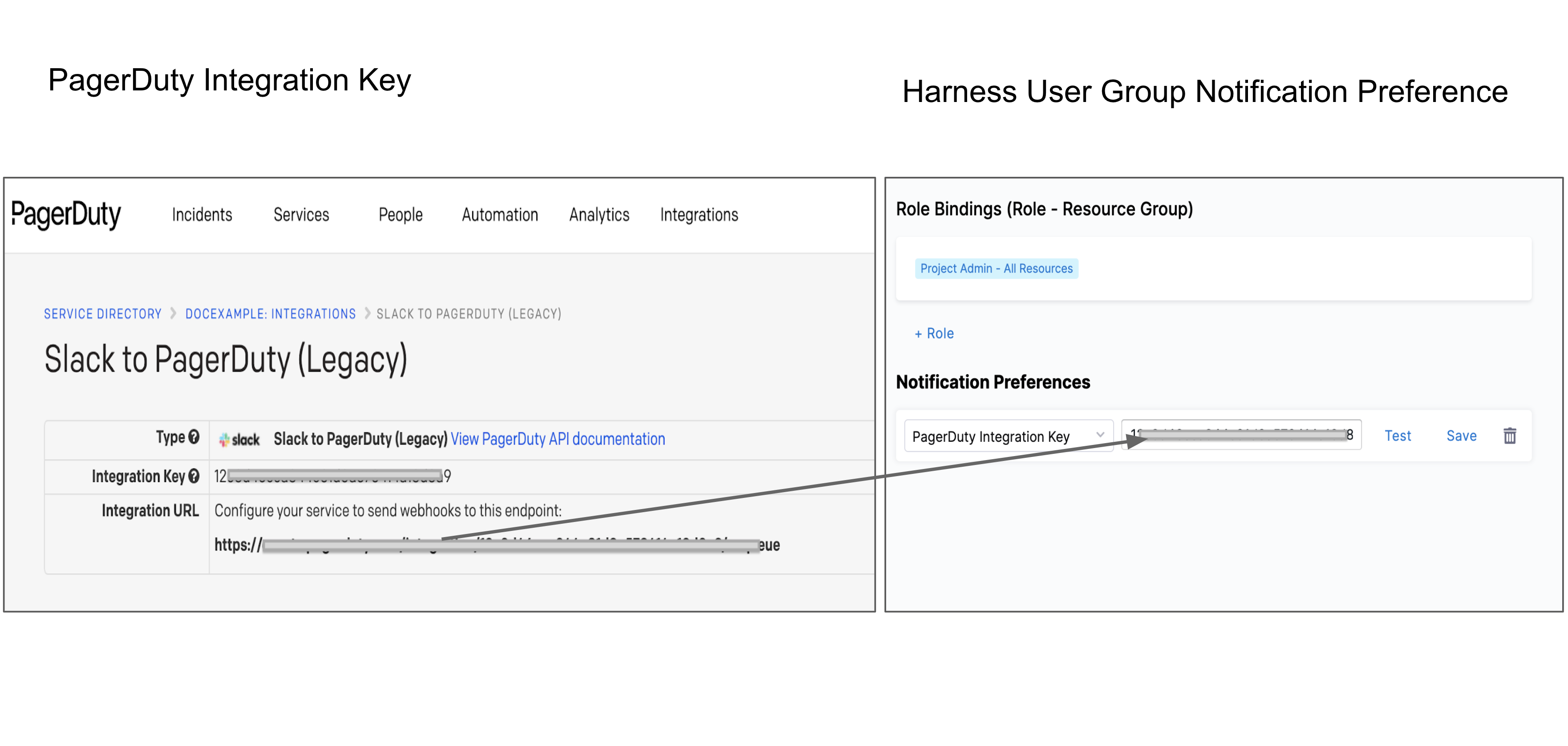 • PagerDuty Integration Key: Enter the key for a PagerDuty Account/Service to which Harness can send notifications. You can get this key from the integration details in PagerDuty (navigate to Services and then Service Directory).