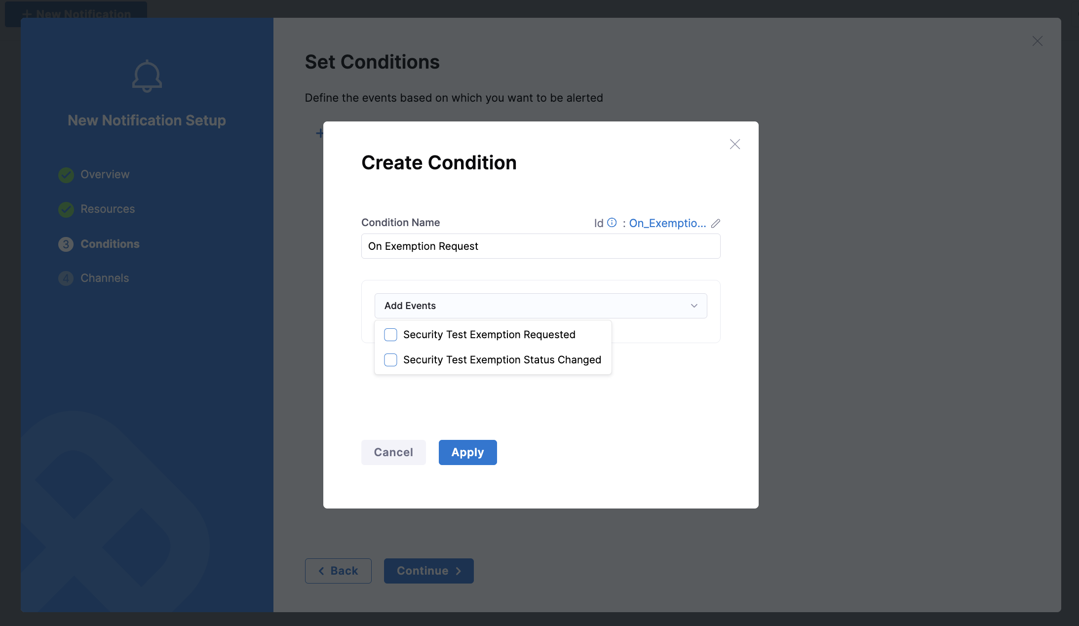 To start receiving notifications for STO exemptions, you need to configure Notification Channels and Notification Rules. They can be set up at the Project, Organization, or Account level.