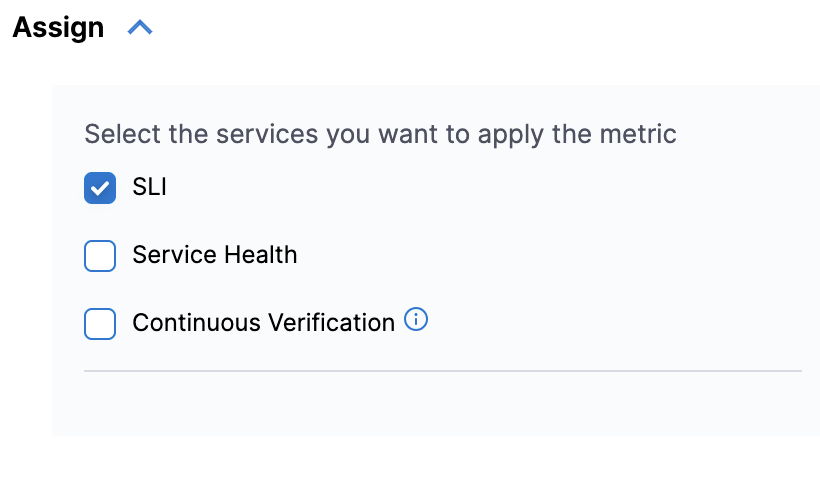 1. Assign SLIs to the health source by mapping the metrics to service level indicators: