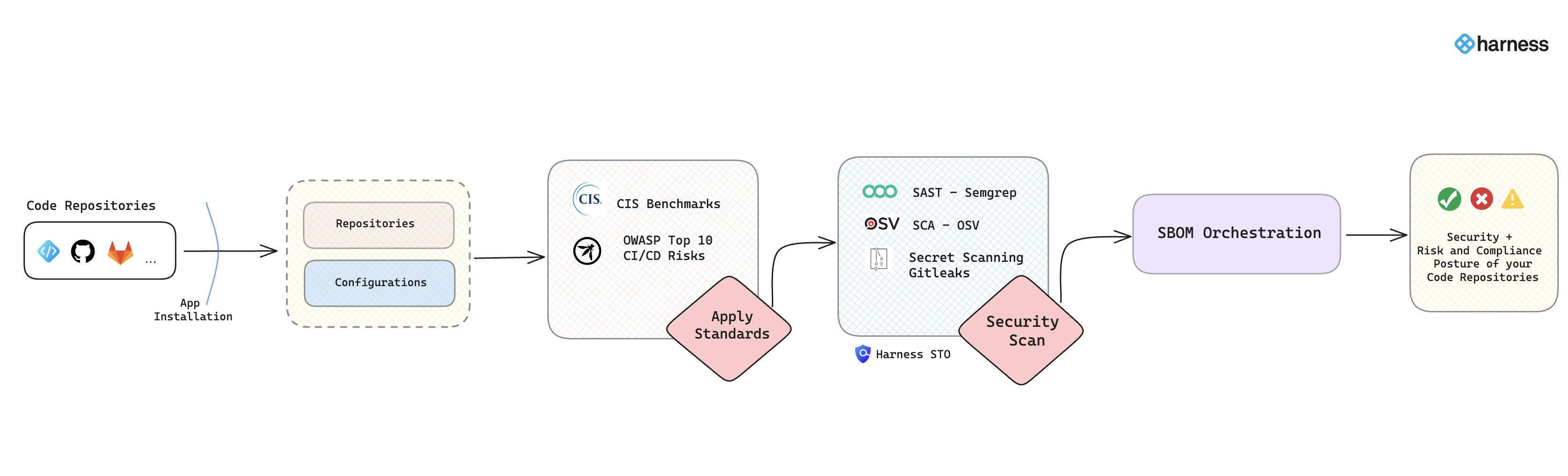 The code repository is cloned in the Harness cloud for executing these scans, facilitated by the STO (Security Testing Orchestration) module