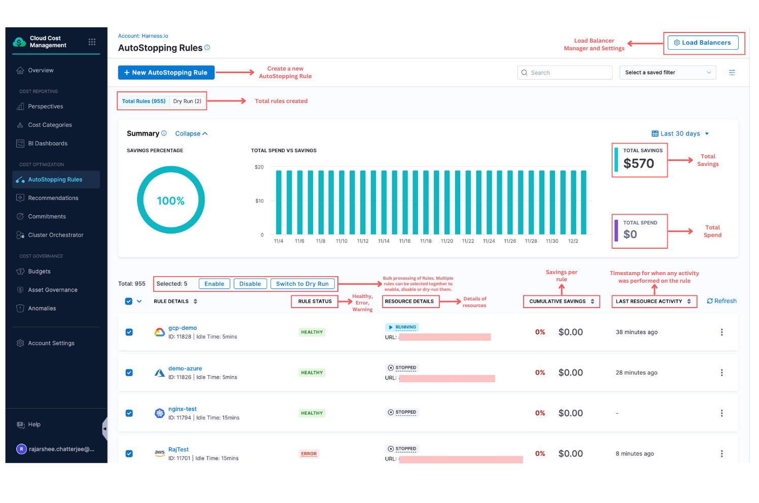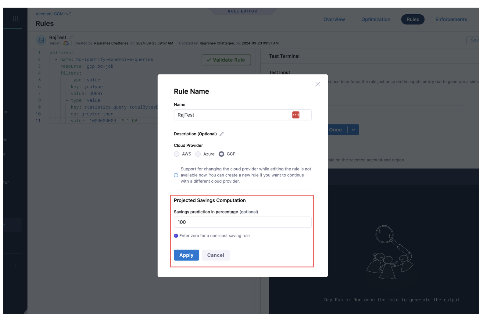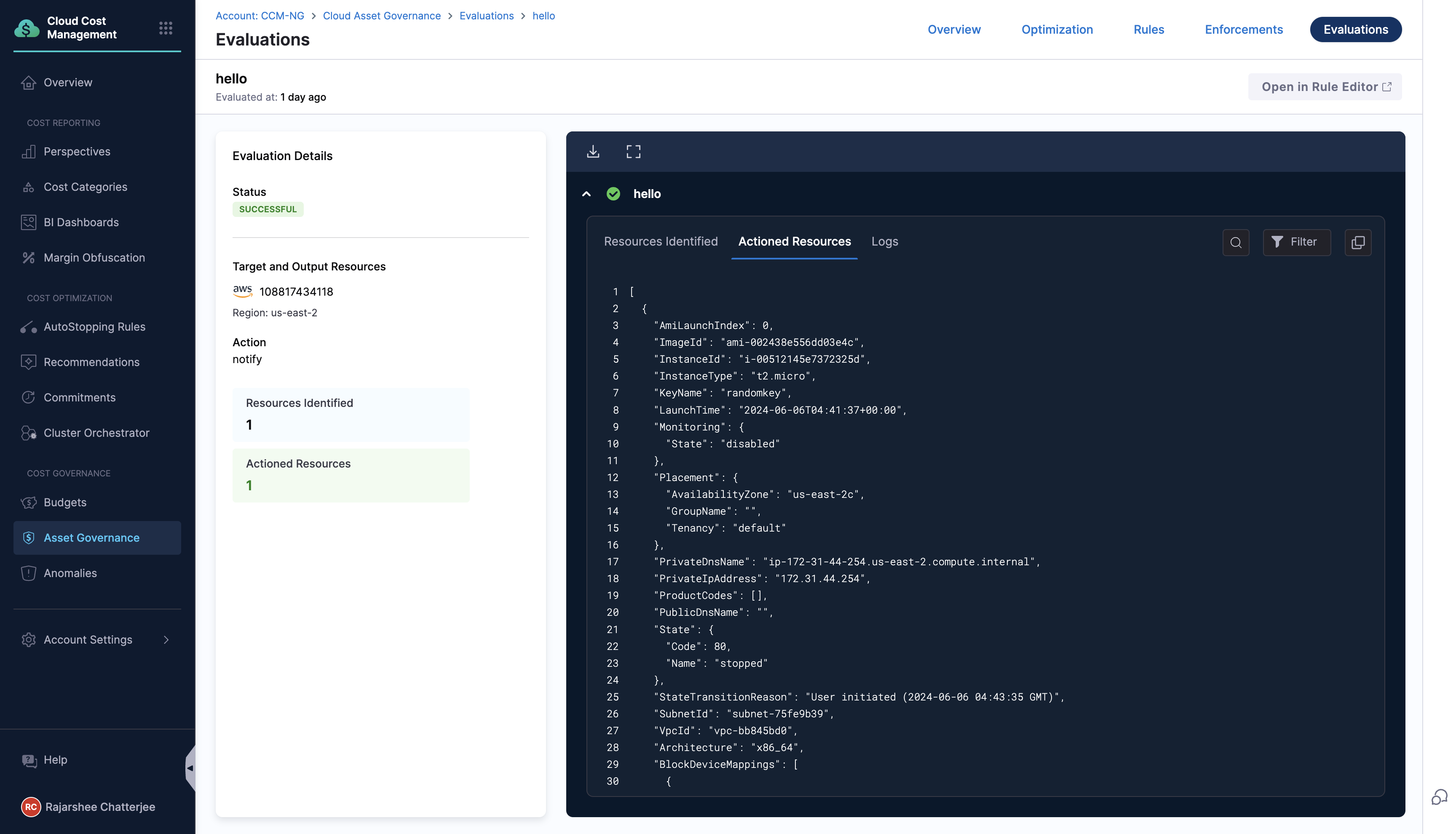 • Realized Savings from Governance Enforcements: We’ve added support for showing realized savings for enforcements. On both the enforcement list page and the enforcement details page, monthly savings will now be displayed for non–dry run enforcements. [CCM-27472]