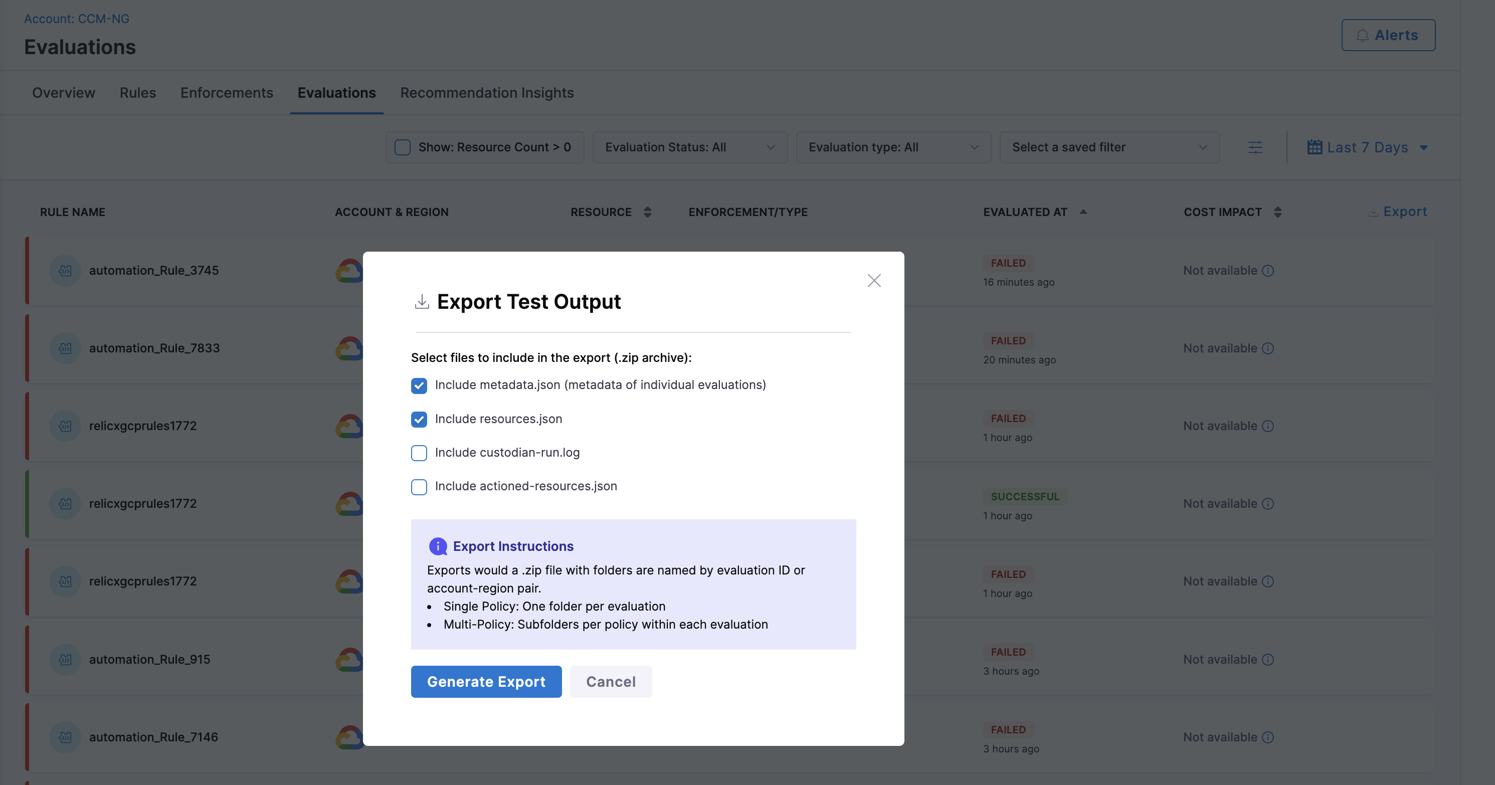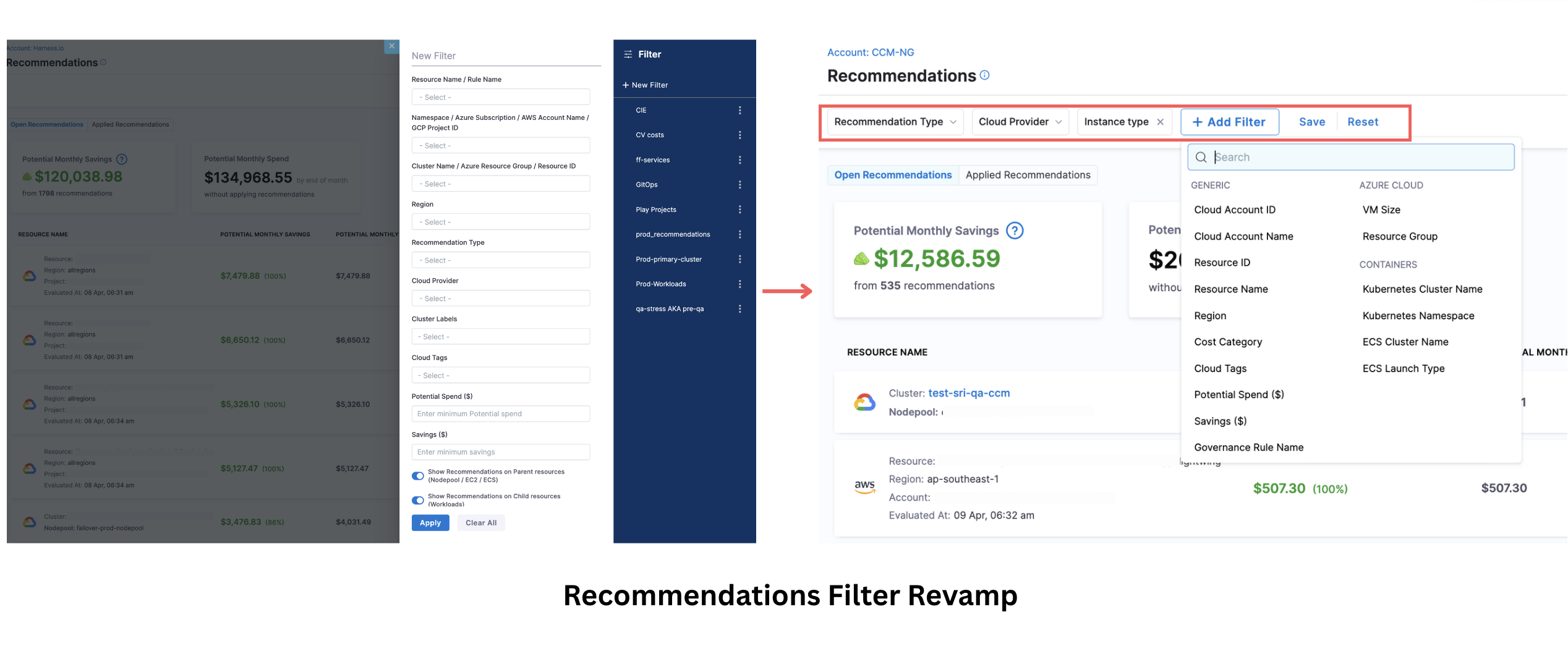 • Refresh recommendation resources and instance details (CCM-8720)