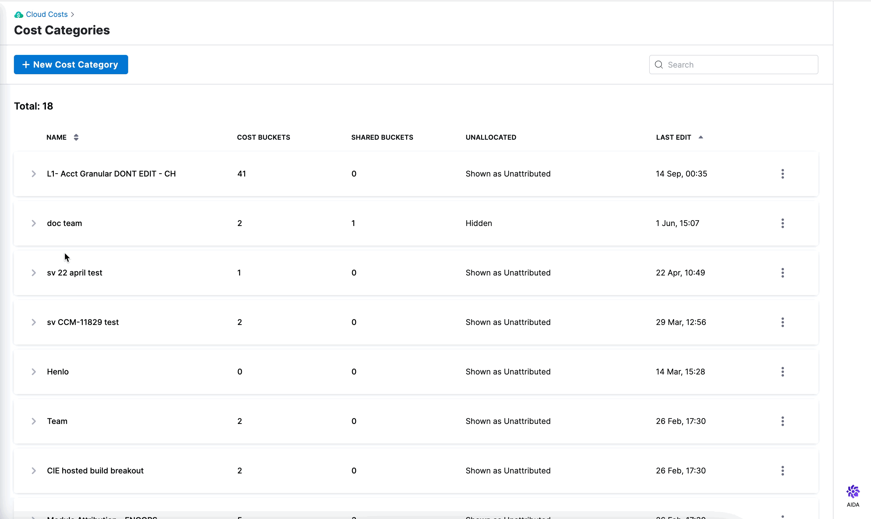 • Cost Category-based perspective does not showcase cost breakdown (CCM-8068)