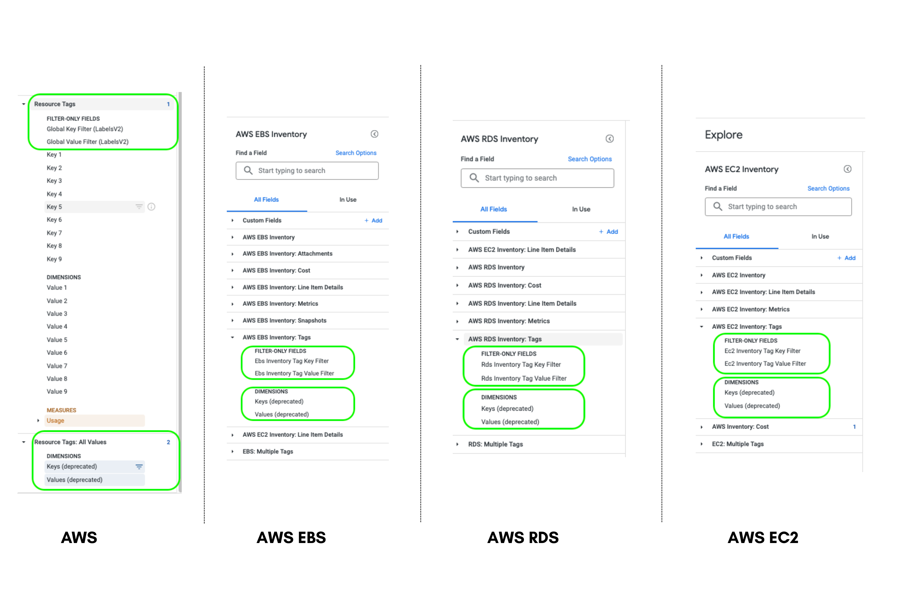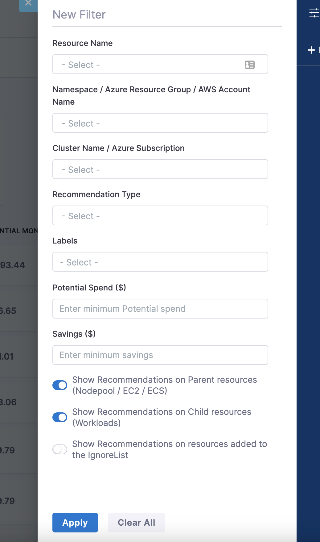 • Optimized Filter Fields: Users can filter AWS billing data by one or more key/value pairs using the "Resource Tags: All Values" fields, which have been optimized for better performance