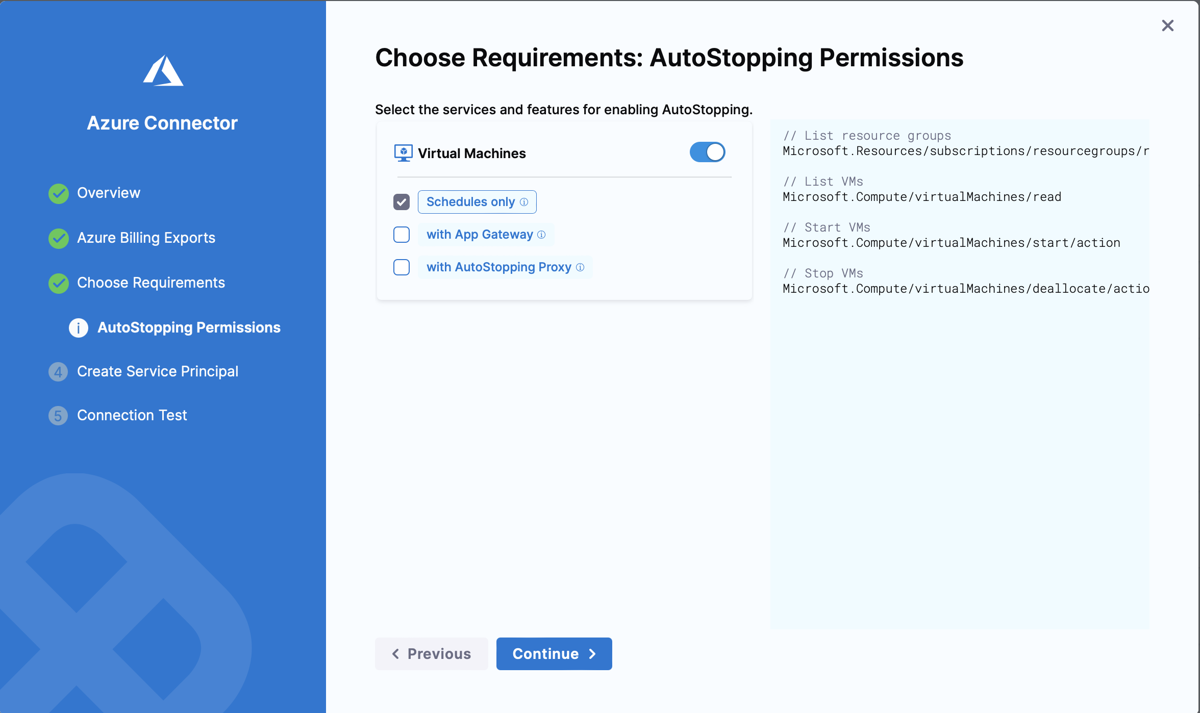 As part of Azure Connector validations for Inventory and AutoStopping, we're now checking whether the service principal has the required roles for these features: Reader role for Inventory and Contributor role for AutoStopping. These checks will run whenever Test Connector APIs are hit for CeAzure connectors.