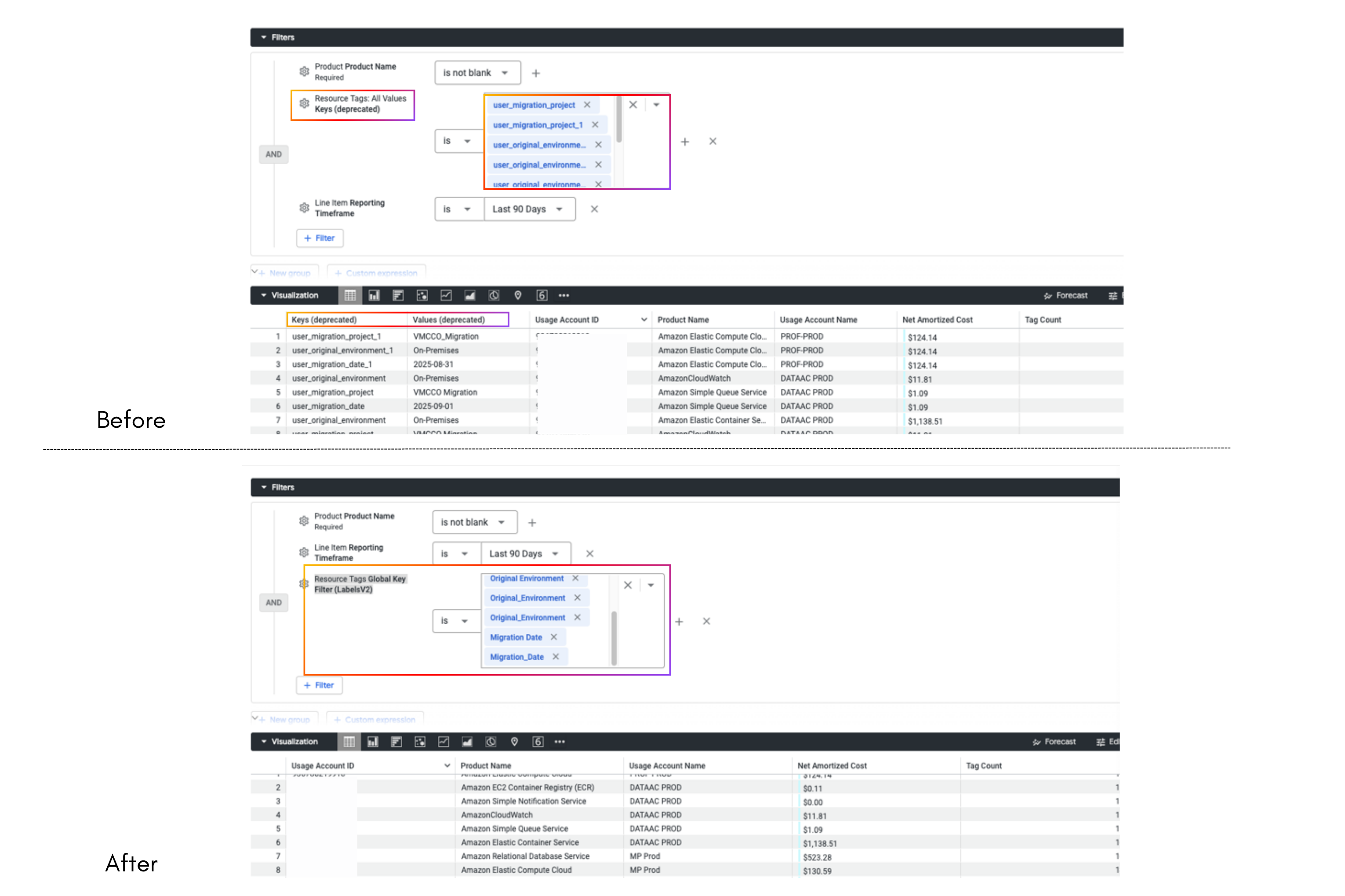 • Optimized Tag Filtering: We've introduced an improved approach for filtering data using resource tag values, simplifying queries and reducing load times.