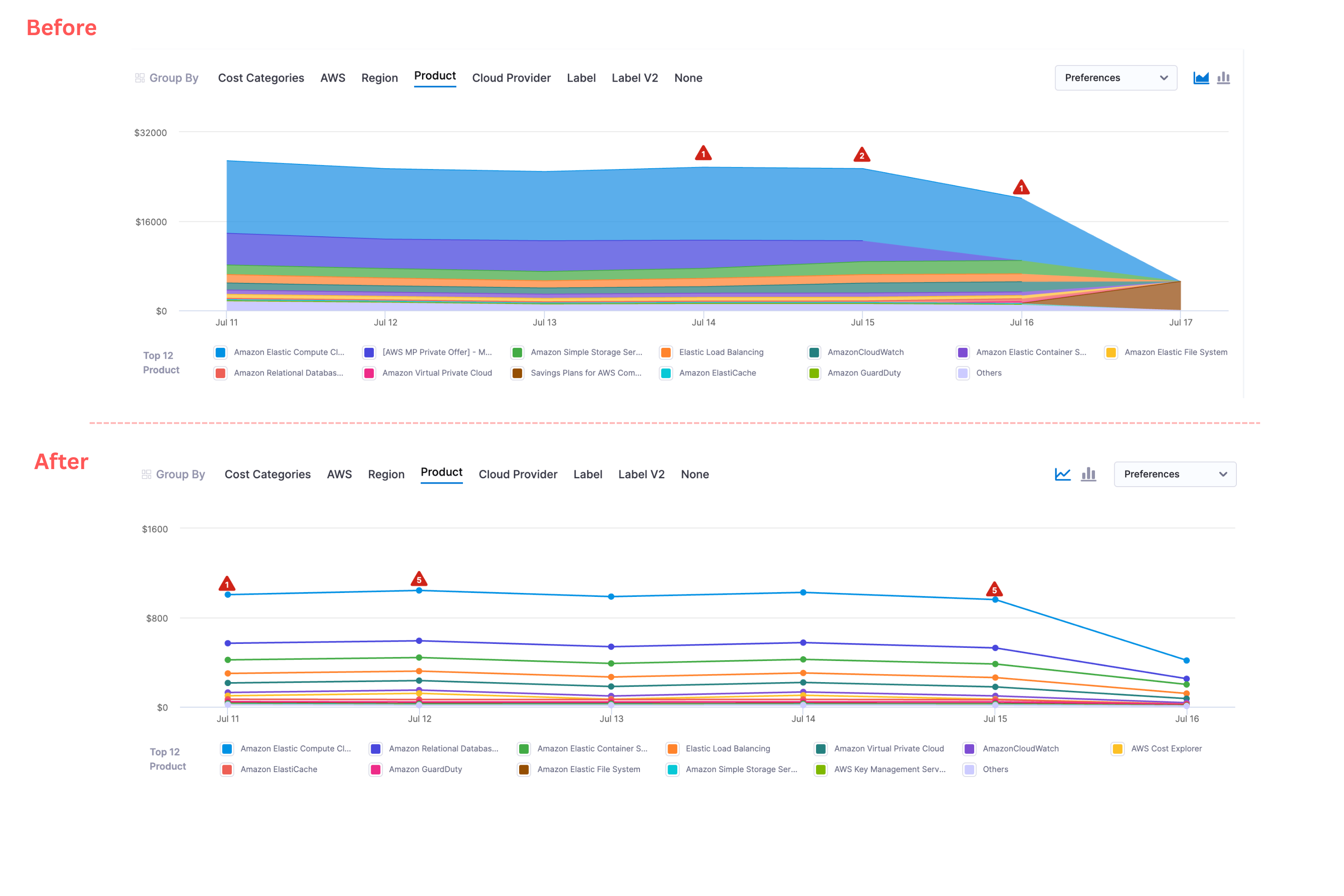 • Perspective Page Improvements: CCM has removed the 'Apply Filter' functionality from the anomalies tooltip on the Perspective page. Anomalies now correctly honor the perspective data aggregation value. [CCM-26647]