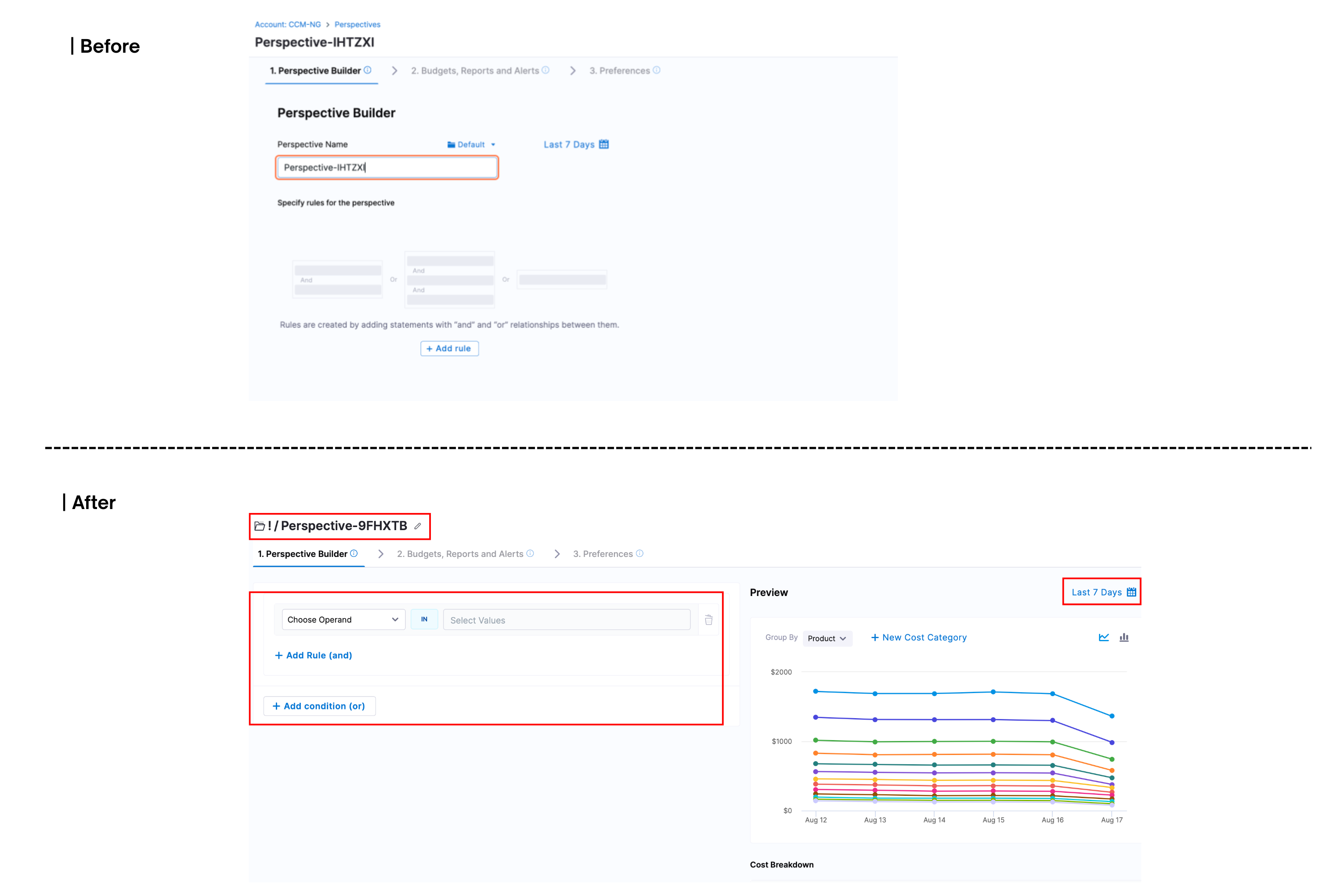 • **Persistent behaviour across Perspective Rules **: Previously, when adding new rules, the Perspective’s default group-by and time range values were being reset to their defaults. This has now been fixed — they will persist across rule changes. [CCM-25493]